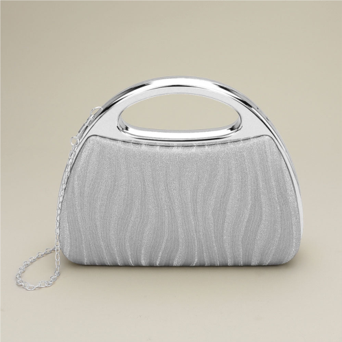 Size - 8.5' X 6.5' X 3'Top Handle Size - 2' LStrap Size - 46'LClasp ClosureA refined evening handbag featuring a sculpted silhouette, metallic handle, and shimmering textured body. Designed for formal events, it offers a polished finish and a detachable chain for versatile styling, keeping essentials organized while enhancing any sophisticated look.
