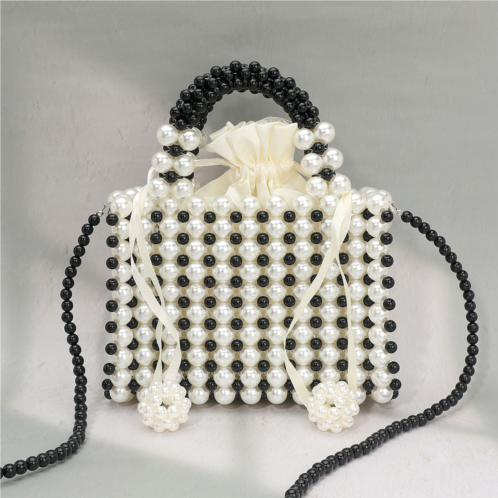 Size - 7' X 5' X 2' Top Handle Size - 2.5' LStrap Size - 44' L / Detachable, AdjustableChic mini handbag featuring a structured pearl beaded exterior, dual handles. Ideal for weddings, parties, or formal events, it adds a refined and unique flair to any ensemble.