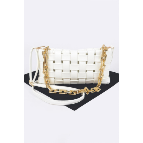 The Braided Chain Crossbody Bag blends structure with soft sophistication. Featuring a sleek rectangular body and a braided chain strap, it offers a subtle mix of edge and elegance. The compact shape is ideal for on-the-go wear, making it perfect for hands-free styling throughout the day or evening.