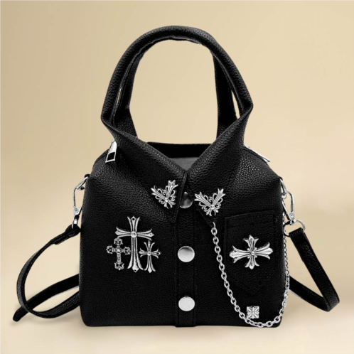 Size - 7.9' X 7.9' X 2'Top Handle Size - 5.5' L Strap 1 Size - 15' L / DetachableStrap 2 Size - 35' L / DetachableZipper ClosureMaterial - 100% Polyurethane (Shell), 100% Polyester (Lining)Stylish mini tote crossbody bag featuring bold cross details and decorative accents for a statement look. Designed with top handles and a detachable strap for versatile carrying. Ideal for daily use, travel, concerts, or casual outings while keeping essentials organized and close.