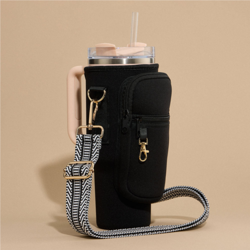 [US] FASHNZFAB solid tumbler carrier holder chevron pattern strap crossbody bag