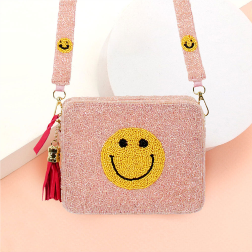[US] FASHNZFAB seed beaded smile accented rectangle tassel crossbody bag