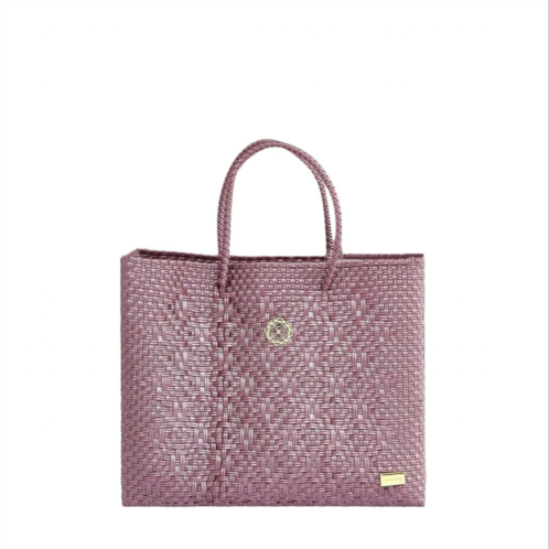 This crossbody bag will be your go-to bag of the season.The Women's Regular Long Strap Crossbody Tote Bag by Lola's Bag is a testament to craftsmanship and sustainability, crafted by native Mexican artists. Made from recycled plastic, this old pink tote is both waterproof and lightweight, ensuring durability and style for everyday use. It features regular braided plastic, adorned with a sterling silver- or gold-plated logo plate, adding a touch of elegance. With approximate dimensions of 9.44 inches x 3.93 inches x 11.02 inches, it's a perfect fit for your essentials, and is also available in a medium size.