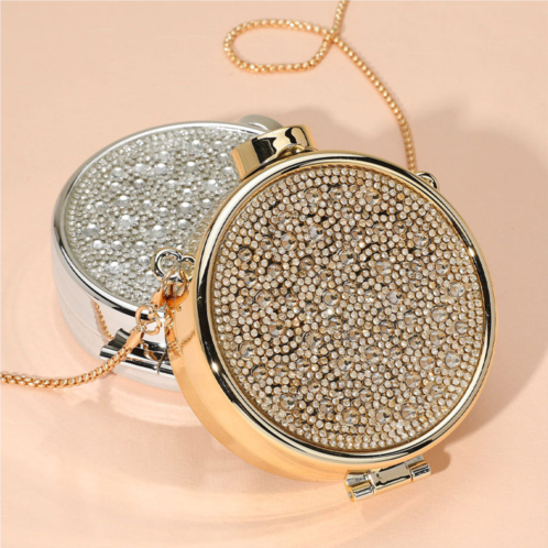 [US] FASHNZFAB bling studded round compact clutch evening bag / crossbody bag