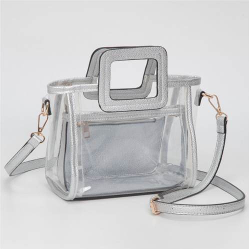 Size - 8' X 8.5' X 4' Top Handle Size - 2.1' LStrap Size - 48' L / Detachable, AdjustableZipper ClosureClear Pouch Size - 7' X 5' X 3' / Zipper ClosureFlat Pouch Size - 6.5' X 3.75' / Zipper ClosureStylish clear 3-piece bag set featuring a structured top-handle tote, detachable crossbody insert and matching zip pouch. Ideal for stadium events and everyday organization, offering convenient storage, lightweight design and versatile carrying options for on-the-go use.