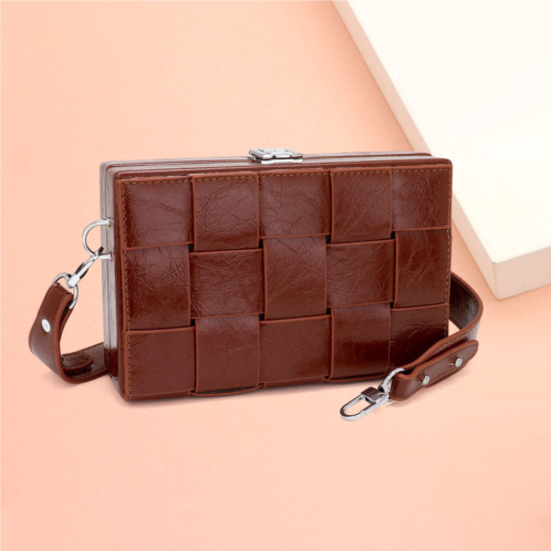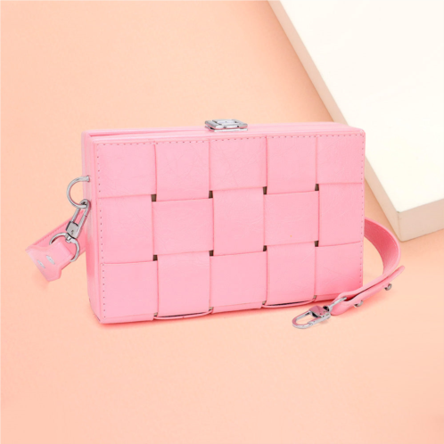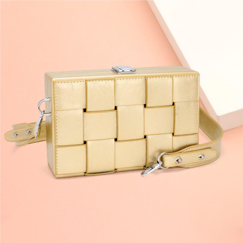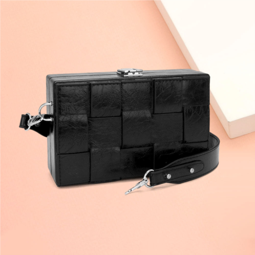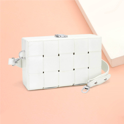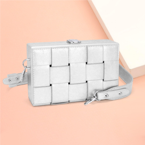 [US] FASHNZFAB faux leather woven square box crossbody bag