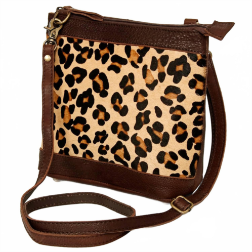 This crossbody bag will be your go-to bag of the season.The Women's Small Crossbody Bag by American Darling is crafted from high-quality genuine full grain leather, promising a soft texture that ages gracefully. Enhanced with a handpicked cheetah print cowhide hair-on genuine leather, it delivers a distinct western flair. This brown crossbody bag features an adjustable leather shoulder strap and durable solid antique finish metal fittings, making it both stylish and functional. It measures 9.5 inches in height and 11.5 inches in width, and is secured with YKK brand zippers known for their longevity.