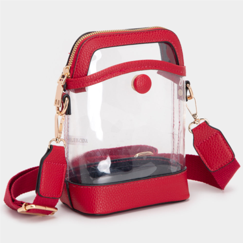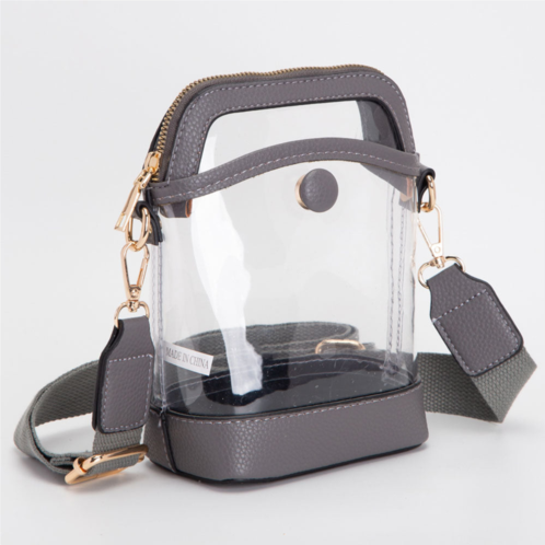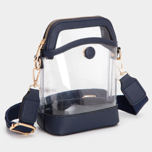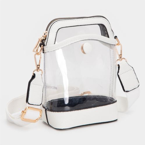 Size - 6' X 7.5' X 3'Strap - Adjustable, DetachableZipper ClosureOne Outside Slip Pocket / Magnet ClosureCompact and stylish clear crossbody bag featuring a secure zipper top, wide adjustable strap, and sleek gold-tone hardware. Perfect for stadium events, concerts, or travel, offering convenience and compliance without compromising on modern style.