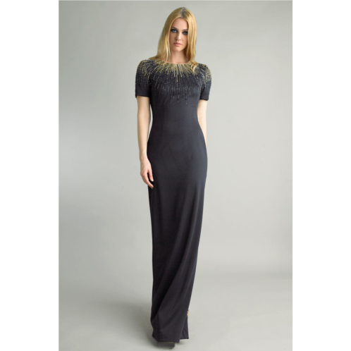 [US] Basix Black Label short sleeve evening gown with sequin motif