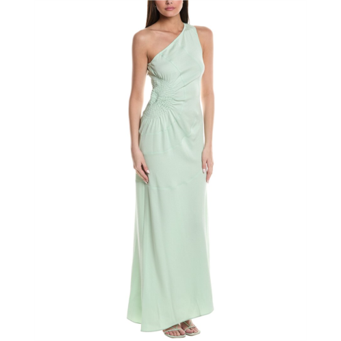 Introducing the A.L.C. Paige Maxi Dress, a stunning addition to any woman's wardrobe. This one-shoulder design in a fresh mint color features smocked side detailing for an elegant touch. With a length of approximately 60 inches from shoulder to hem, this dress is perfect for any special occasion. The left side seam zipper with hook-and-eye closure ensures a secure and flattering fit. Made from 77% acetate and 23% polyester, this dress is recommended for dry clean only. Imported and designed by the bold, modern, and wearable brand A.L.C., this Paige Maxi Dress is sure to make a statement wherever you go.