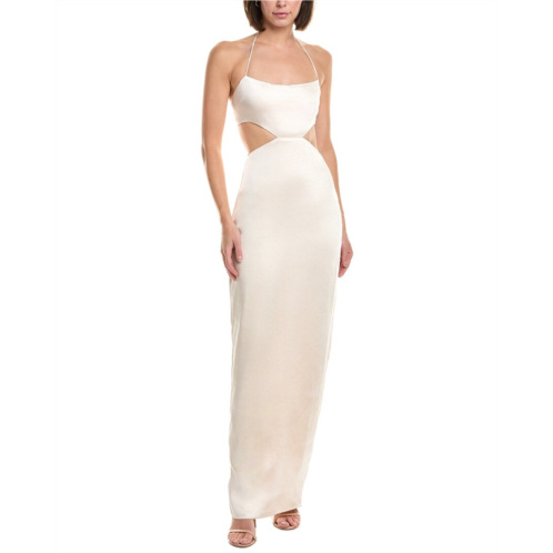 Introducing the STUDIO LEXI Thea Maxi Dress, a stunning addition to your wardrobe. This elegant dress features a beautiful vanilla color, self-tie halter straps, cutout sides, and a split back hem for a sophisticated look. Made from 100% polyester with a lining of 97% polyester and 3% elastane, this dress is both stylish and comfortable. The design also includes a center back zipper with hook-and-eye closure for easy wear. Perfect for special occasions, this dress is approximately 63 inches from shoulder to hem and is sure to turn heads. Hand wash only. Imported. Model is 5'9 and is wearing a size 6, measurements may vary slightly by size. Elevate your wardrobe with the STUDIO LEXI Thea Maxi Dress today.
