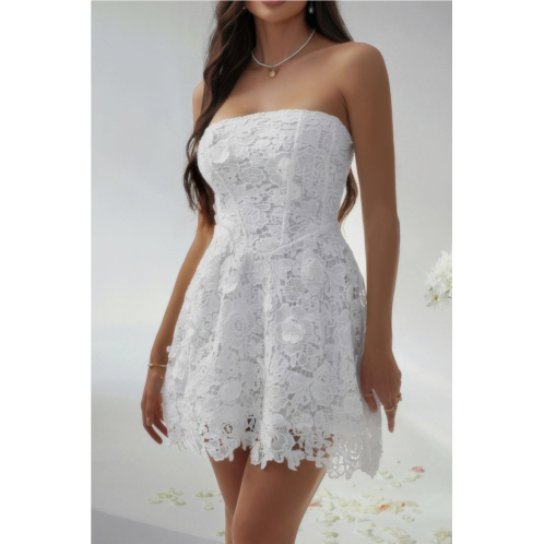 Bring a touch of allure to your wardrobe with this solid lace-up lace mini fit tube dress, designed for standout style and confidence. Made from 100% polyester, this dress features a flattering tube silhouette that hugs the body for a sleek, feminine look. The delicate lace overlay adds a romantic touch, while the lace-up detailing enhances the overall design with playful charm. Perfect for nights out, special occasions, or warm-weather events, this mini dress offers a perfect balance of elegance and fun.