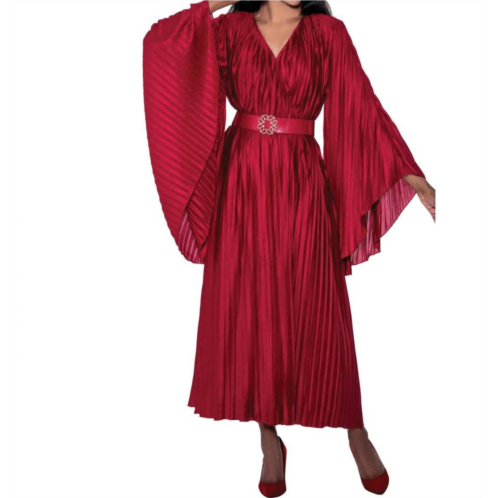 Cute and comfortable, this long sleeve dress has it all.The Queenly Grace Belted Dress by Dorinda Clark Cole is a refined addition to your formal wardrobe, offering sophistication in a rich red hue. This women's dress features long oversized queen sleeves, creating an elegant silhouette appropriate for special occasions. It boasts a coordinating belt to cinch the waist, providing a flattering slip silhouette with a V-neckline. Closure - Pull-on style. Care - Dry clean.