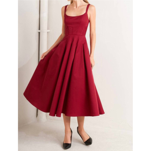 [US] FLYING TOMATO solid woven midi dress in maroon