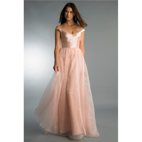 [US] Basix Black Label off shoulder pleated gown