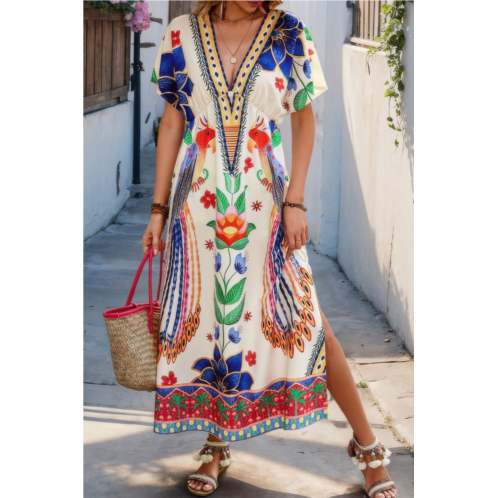 Step into effortless elegance with this floral deep V-neck batwing sleeve dress, designed to flatter and flow with every movement. The soft, stretchy fabric hugs comfortably while the batwing sleeves add a touch of relaxed sophistication. A deep V-neckline enhances the feminine silhouette, while the allover floral print brings a fresh, vibrant charm to your wardrobe. Ideal for casual outings, vacations, or outdoor gatherings, this dress offers both style and comfort in equal measure. Pair it with your favorite sandals or heels for a versatile look that works for day or night.