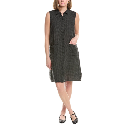 - Classic Linen Midi Dress In Black With Two Front Patch Pockets, And Side Slits