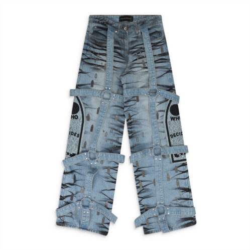 [US] Who Decides War blue stripe bondage wide-leg jeans