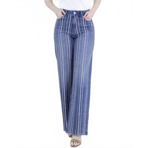 [US] Original USA pinstripe rhinestone embellished high rise ultra wide leg jeans plus in denim blue