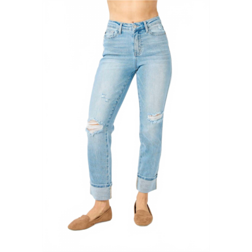 [US] Judy Blue mid rise americana star pocket cuffed boyfriend jeans in Blue