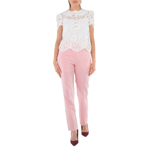 Burberry Ladies Bottoms. Fashion category - Pants & Leggings. SKU - 8063084. Material - Wool. Color - Seashell Pink. Burberry Aimie Tailored Straight Leg Wool Trousers. Pants features concealed hook bar, button, and zipper closure with a flap, side slip pockets, back welt pockets with buttons, belt loops, and central sharp pleats on the front and back100% Wool. Made in Italy.