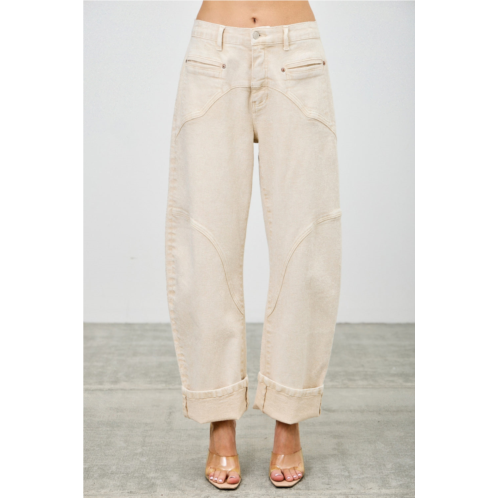 Bring bold personality to your denim lineup with these high-rise colored western barrel jeans, designed to make a statement with a modern twist on classic western style. The flattering high-rise waist pairs with a contemporary barrel-leg silhouette for a sculpted yet relaxed fit. Featuring an allover printed finish, these jeans add a vibrant, standout element to any outfit. Crafted from a stretch-infused denim blend, they offer lasting comfort and shape retention. Finished with a zipper fly and traditional five-pocket styling, they balance bold design with timeless denim details.