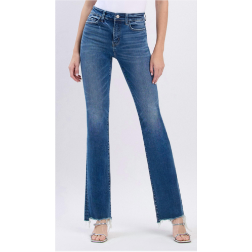 If you're looking for boot-cut, this is the jean for you.Introducing the Lovervet Raw Hem Bootcut Jeans, a must-have for your denim collection that flawlessly combines comfort with an edgy flair. These women's jeans feature a solid design with a high-rise waist and a regular fit, beautifully accented by a distressed raw hem and a bootcut leg style. Made in a durable blend of 93% cotton, 5% polyester, and 2% spandex, these jeans offer a comfortable stretch to fit every move, complete with practical pockets and a secure button closure. Care is simple with machine wash and tumble dry instructions, making them perfect for travel, especially during the spring season; they feature a 34-inch inseam and a timeless medium wash.