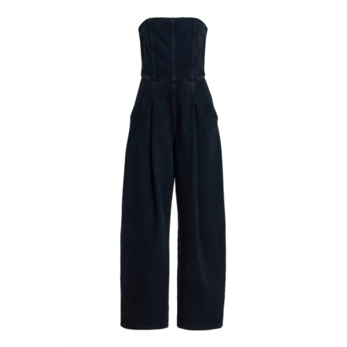 Discover the Women's Agyness Jumpsuit by AGOLDE, a chic option for any cocktail party, crafted in a solid Illusion denim. This strapless design features an off-the-shoulder neckline with a corset bodice and stylish wide-leg silhouette. Material - Denim. Closure - Zip closure.