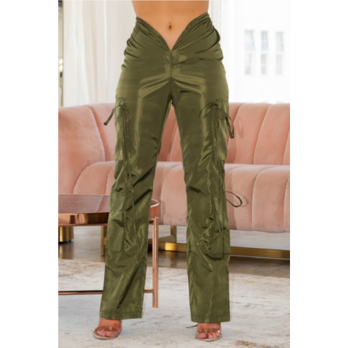 These V-Cut Cargo Pants bring a sleek, structured edge to everyday utility wear. Featuring a distinctive V-shaped waistline hem, they offer a modern, flattering twist on a classic silhouette. The wide-leg cut and open front detail provide flow and movement, while side cargo pockets add both function and style. Crafted from a durable, non-stretch polyester-spandex blend, they maintain their shape while delivering a bold look. Finished with a drawstring waist for adjustable comfort, these pants are the perfect fusion of utility and fashion-forward design.