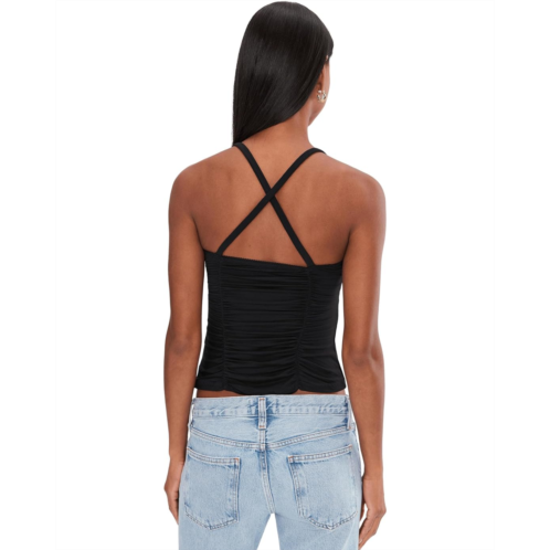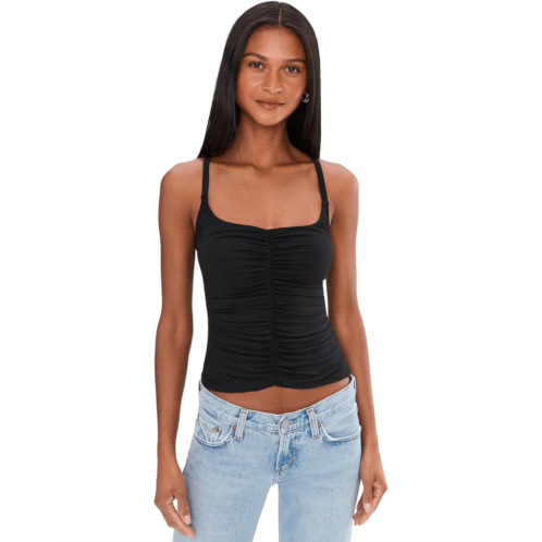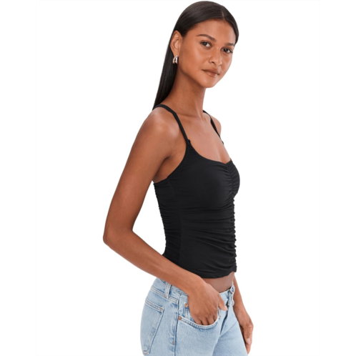 - The Free People Shimmer Shimmer Cami Soli is your new statement essential. Featuring a flattering scoop neckline and delicate spaghetti straps, this sleeveless silhouette feels barely there yet beautifully styled. The ruched detail at the front enhances your natural shape, adding soft texture and a touch of romantic edge. Turn around and let the crisscross back steal the spotlight, unexpected, bold, and undeniably chic. The easy pull-on design keeps things fuss-free, so you can slip it on and glow instantly.