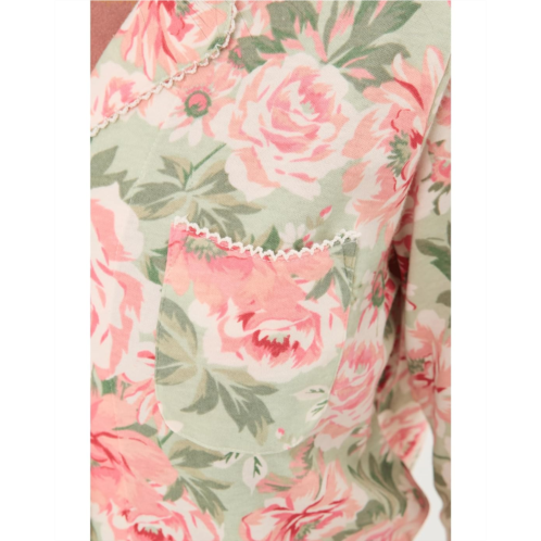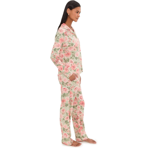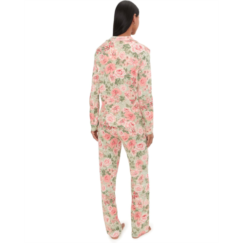 [US] Womens Karen Neuburger Vintage Dreams Long Sleeve Notch Top & Long Pants Set With Picot Trim