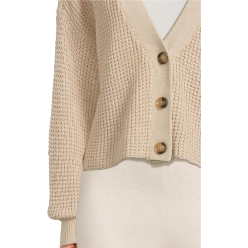- Cropped length waffle stitch sweater cardigan.