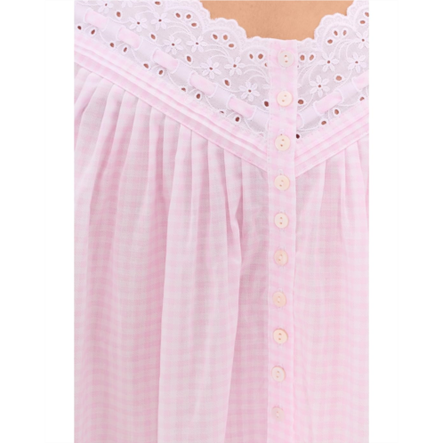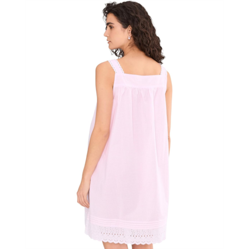 - Woven from crisp, airy Cotton Lawn, this Eileen West Cotton Lawn Swiss Dot Sleeveless Short Chemise is light as a whisper against the skin. A romantic sweetheart neckline is framed with scalloped eyelet lace along the shoulder straps and trimmed with delicate lace beaded through with a playful mini check bias ribbon, adding a cheerful pop of pattern. Tiny pin tucks and gentle pleats dance across the yoke, flowing into a row of dainty buttons down the front. Finished with a wide eyelet lace band at the hem, accented by neat rows of pintucks, this piece captures the joy of carefree days and the tender delight of simple beauty.