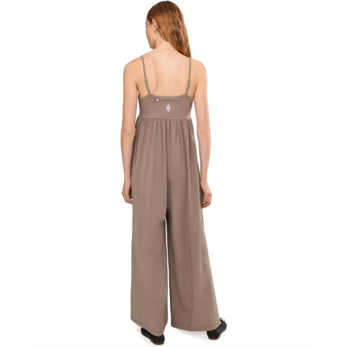 - TheFP MovementHot Shot Strappy One-Piece 2 offers all-day comfort with its pull-on silhouette and a slightly fitted look. It features a square-neck bodice and adjustable spaghettikorea straps for a perfect fit. The pleated detailing at the empire waist adds subtle shape, while slouchy patch pockets and oversized wide legs deliver laid-back comfort. A zipped logo pocket at the back completes the look with functional flair.