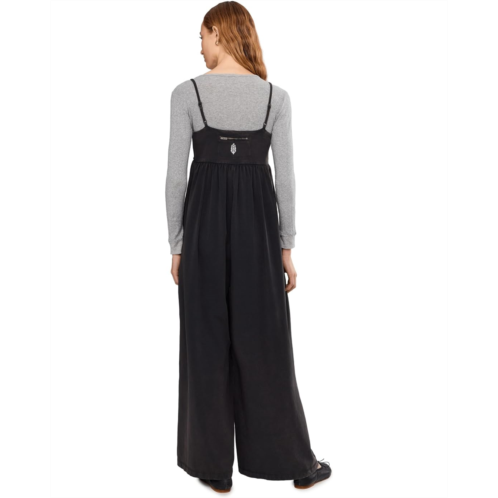 - TheFP MovementHot Shot Strappy One-Piece 2 offers all-day comfort with its pull-on silhouette and a slightly fitted look. It features a square-neck bodice and adjustable spaghettikorea straps for a perfect fit. The pleated detailing at the empire waist adds subtle shape, while slouchy patch pockets and oversized wide legs deliver laid-back comfort. A zipped logo pocket at the back completes the look with functional flair.