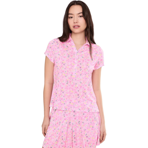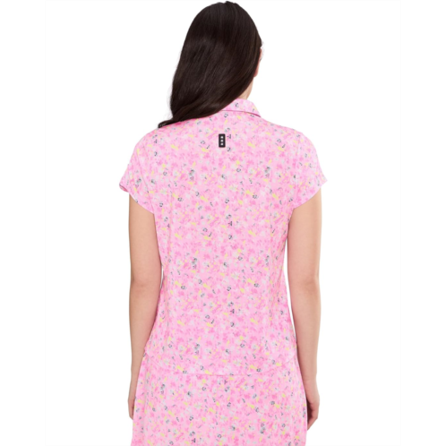 - Step into effortless confidence wearing the Jamie Sadock Wildflower Print Crossover V-Neck Short Sleeve, a top designed to move with you and stand out while doing it. Tailored in an athletic fit, it offers a sleek, flattering silhouette that feels as good as it looks, whether you're on the course, on the go, or off duty. The collared V-neck with a button-front closure adds a refined, modern edge, blending classic structure with contemporary flair. Short sleeves keep things light and breathable, making it ideal for warm days and active moments. The standout wildflower print brings a fresh, vibrant energy, elevating your look from basic to beautifully bold. Finished with a crossover V-neck detail, this top balances femininity and function, giving you comfort, flexibility, and unmistakable style.