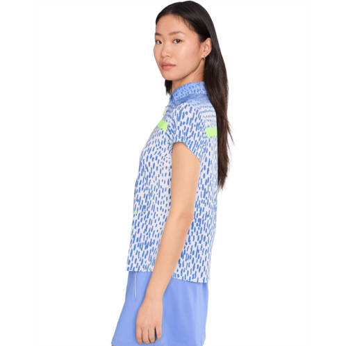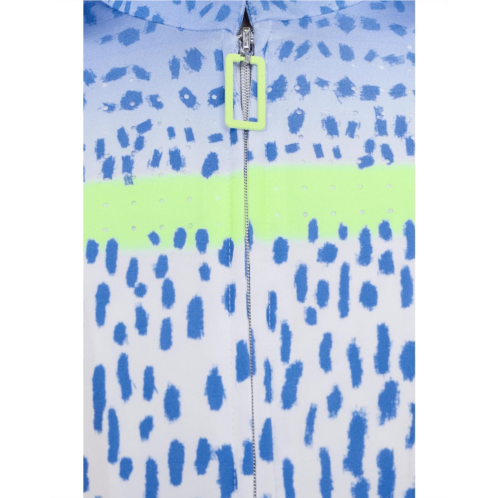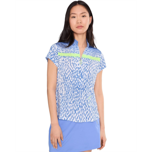 - The Jamie Sadock Short Sleeve Mandarin Collar Front Placket Zipper Top brings a modern twist to golf and leisurewear. Designed with a mandarin collar and zippered front closure, it offers both sporty function and chic style. The short sleeves keep it lightweight and breathable, while the scattered vertical dash print adds a playful, eye-catching detail.