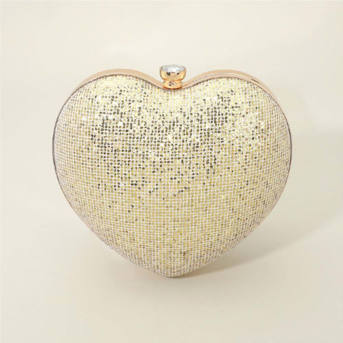 [US] FASHNZFAB bling studded heart shaped evening clutch crossbody bag