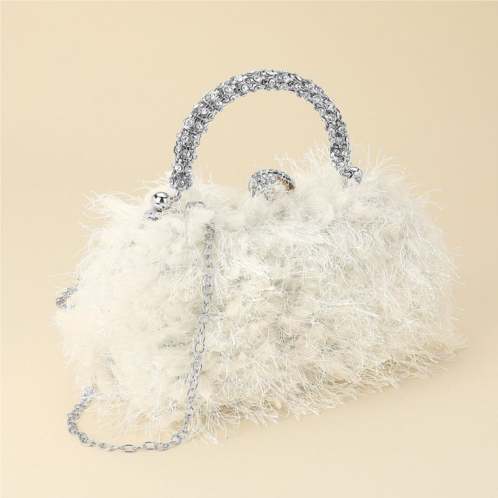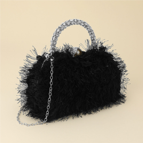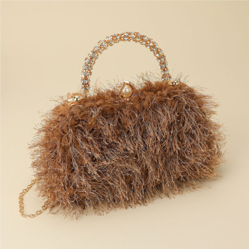 [US] FASHNZFAB crystal handle feather embellished clutch crossbody evening bag