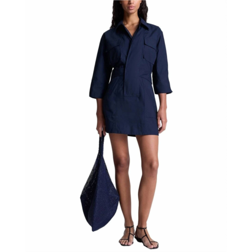 The kind of easy and flattering dress you'll be reaching for all season long.Discover the Evan Dress by A.L.C., a sophisticated mini dress in deep navy with a minimalist, solid pattern. Designed with three-quarter sleeves and made from 100% cotton, this shirt silhouette ensures comfort and style. It's finished with a classic collar and practical button closure, complete with pockets for added convenience. Crafted with precision, this imported piece requires dry clean care to maintain its quality.