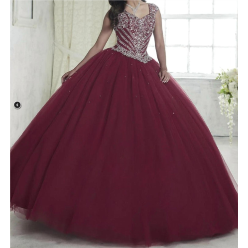 Turn heads in the cutest and most flattering evening dress.Introducing the Women's Tulle Ball Gown Skirt Dress by Fiesta Quinceanera, an exquisite choice for prom with its Sangria hue and maximalist textured pattern. This sleeveless A-line silhouette features a sweetheart neckline, perfect for making a statement at any spring event. It boasts a practical zip closure for easy wear.
