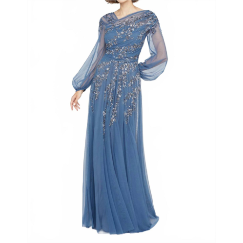 [US] THEIA wilma bishop sleeve gown in grey/celeste