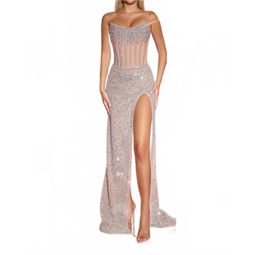 [US] PORTIA&SCARLETT scoop corset beaded evening gown in nude