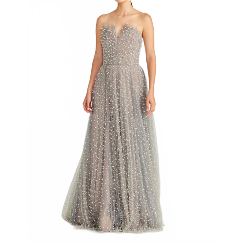 [US] THEIA womens marilyn strapless glimmer gown in silvershade