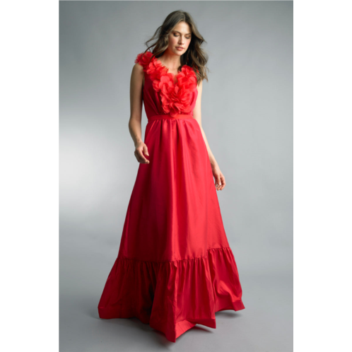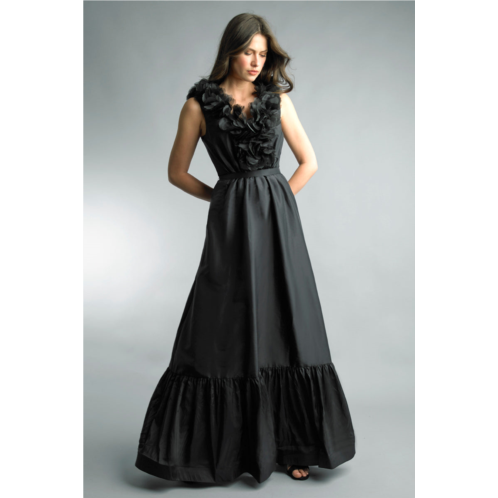 [US] Basix Black Label sleeveless gown with laser cut floral motif collar