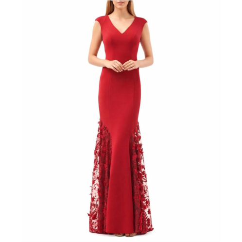 [US] Carmen Marc Valvo embellished crepe gown in red