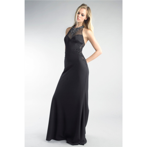 [US] Basix Black Label halter gown with crystal motif on neck line