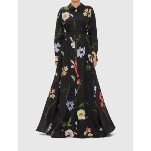 Style this maxi with your favorite statement necklace and sandals for the perfect look.Introducing the Josephine Dress by LEO LIN, a statement piece perfect for fall evening events. This long sleeve floral maxi dress in botanical print and ebony features a sophisticated collared neckline. Designed with convenience in mind, it includes pockets and a button closure. Ideal for women seeking a refined and fashionable shirt silhouette.