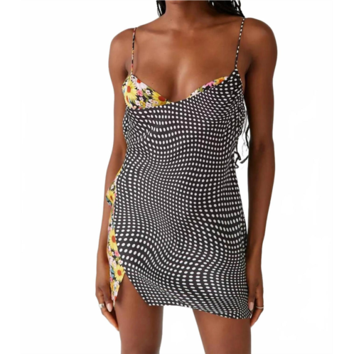 A short and breezy dress for those warmer days.Elevate your vacation wardrobe with the Anya Mini Dress by For Love & Lemons, a darling for summer occasions. This sheath silhouette features spaghetti straps and a chic sweetheart neckline. Crafted from a 50% Ecovero and 50% Viscose blend with mixed prints and polka dot patterns, it boasts a cross-over design with an underwire bra for a stunning fit. Closure - Convenient zip closure. Care - Hand wash.