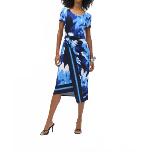 [US] Joseph Ribkoff tropical print asymmetrical dress in blue/vanilla